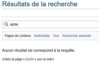 S’il n’y a pas de résultats, ou pas de correspondance exacte, la page de résultats s’affiche avec les parties des articles où le mot recherché apparaît.